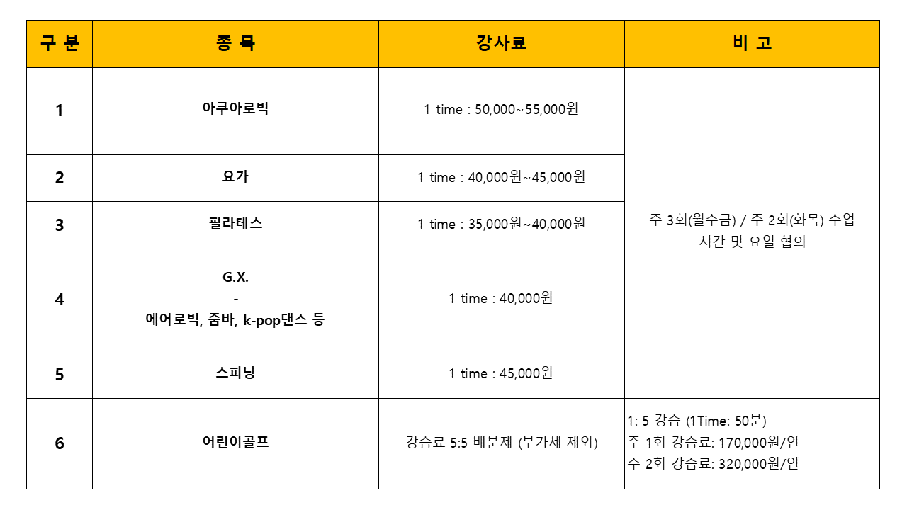 코오롱스포렉스 세종청사점(정부세종청사체육관)에서 각 부문 파트강사를 모집합니다.